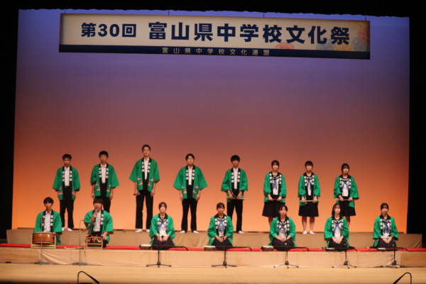 10/5 富山県中学校文化祭 2025年10月12日 に 平中学校 が投稿 富山県民会館にて富山県中学校文化祭が行われました。 総合的な学習の時間の民謡学習の成果を発揮し、五箇山民謡を堂々と優雅に発表することができました。10/25の学習発表会、11/3の平芸能まつりでの発表も頑張ります。