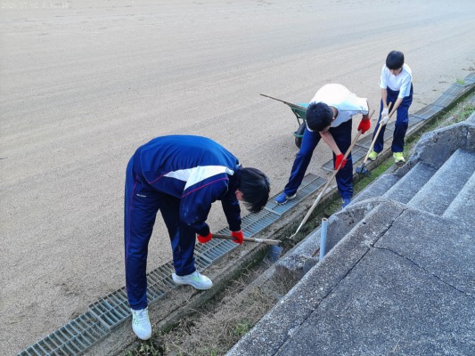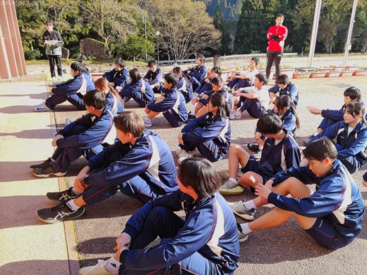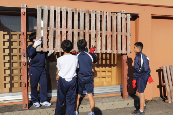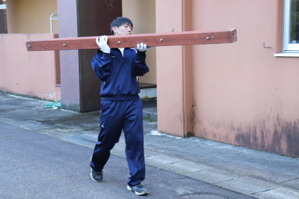 人形山の上の辺りが白くなってきた10月30日(木)に冬支度を行いました。全校生徒で協力して冬の準備を行いました。