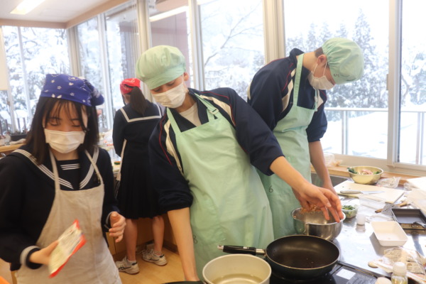 授業後の振り返りで「弁当づくりの大変さが身にしみて感じた」「弁当を作ってくれる親に感謝したい」と感想を書いていました。「高校生になったらよろしく!」と伝えられたかな?