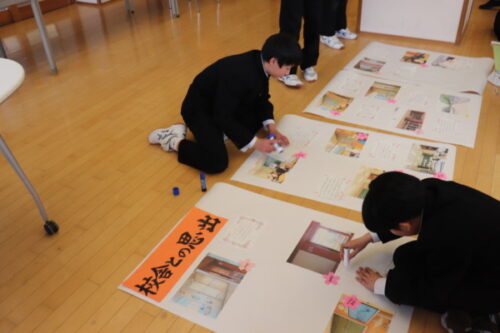 閉校への想い 2026年3月23日 に 平中学校 が投稿 閉校まで残り5日となりました。 今年度最後の道徳として、一人一人が校舎への想いを形にし、1階に掲示しました。 1年生は1年間、2年生は2年間過ごした学び舎に対する感謝、閉校することへのさみしさ等、愛校心が素敵な形となりました。 閉校式のときに掲示しますので、ぜひご覧ください。